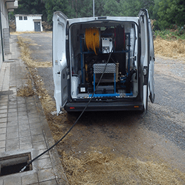 Empresa de desentupimentos mecanizados com equipamento profissional.